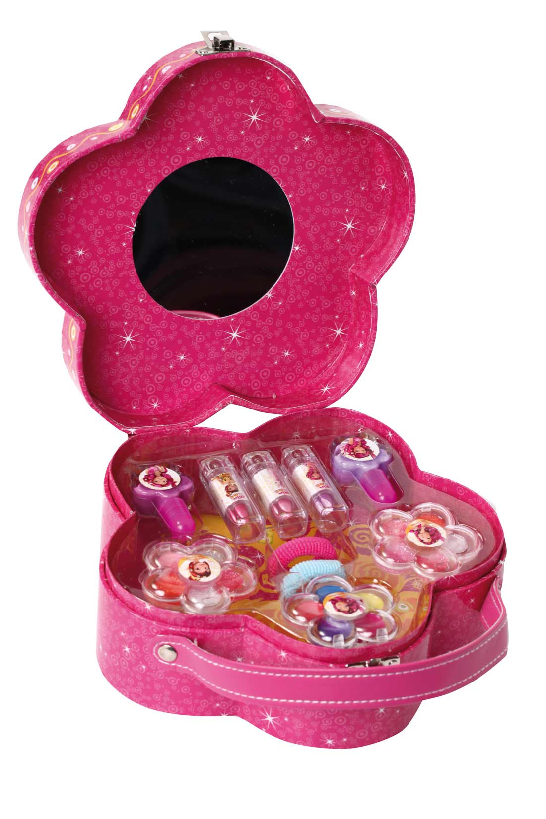 Mia and Me Beauty bauletto a forma di fiore con specchio, 3 rossetti, 2 smalti, 2 elastici per capelli, 1 confezione fiore con 6 ombretti, 2 confezioni fiore con 6 lucidalabbra l'una e 2 pennellini, da 3 anni.