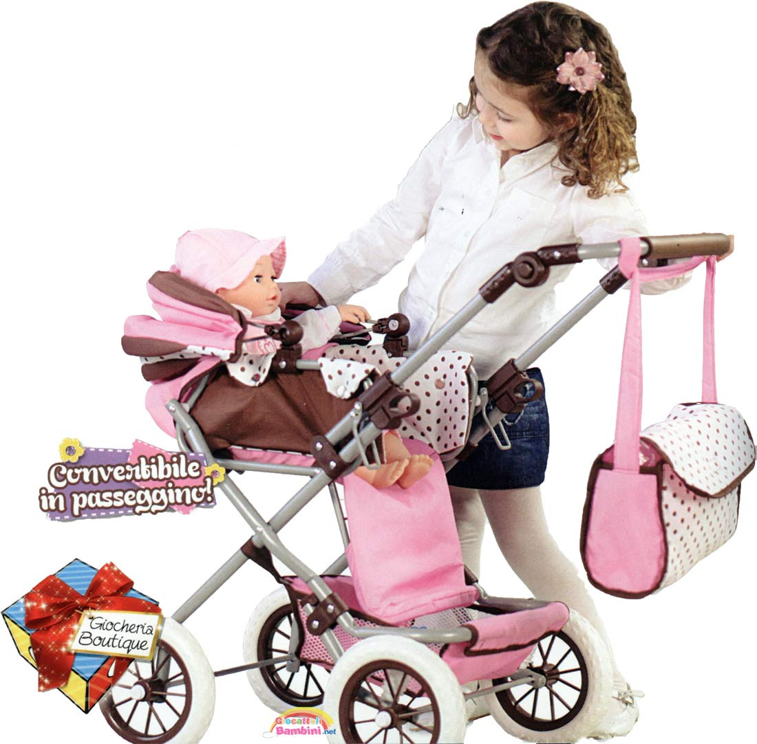 Carrozzina Basic, trasformabile in passeggino con impugnatura regolable in altezza, cappotta parasole, cesta port-enfant estraibile, schienale e poggiapiedi regolabili, cintura di sicurezza, borsa e cestello porta oggetti, dimensione cm 63x61x39, da 3 anni