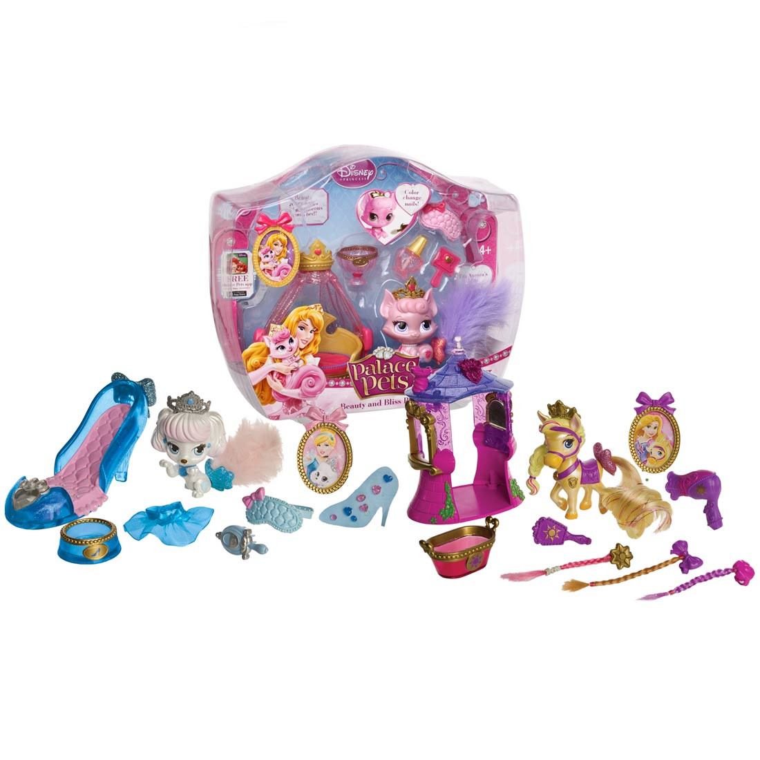 Palace pets beauty and bliss, assortiti n 3 modelli diversi con tanti accessori, richiedi la disponibilità del tuo preferito inviandoci una mail all'indirizzo info@magictoys.it. Il Pony di Raperonzolo con letto a forma di torre, cagnolino di Cenerentola con il letto a forma di scarpina e la gattina di Aurora con un letto reale.